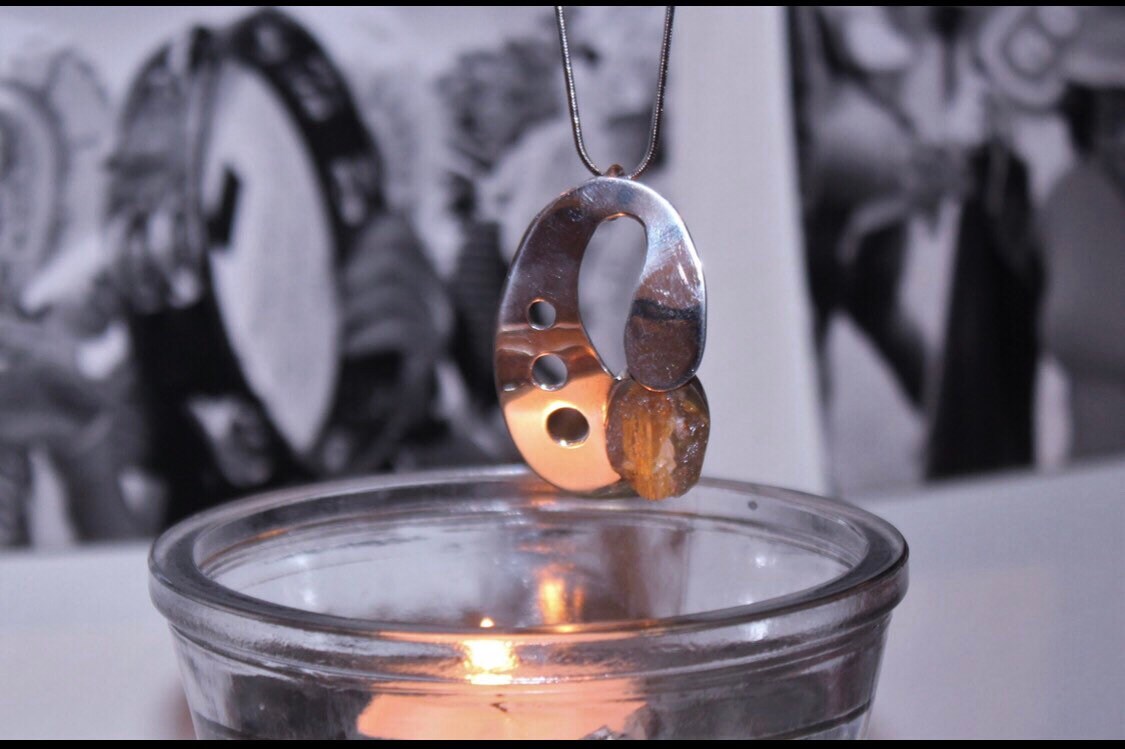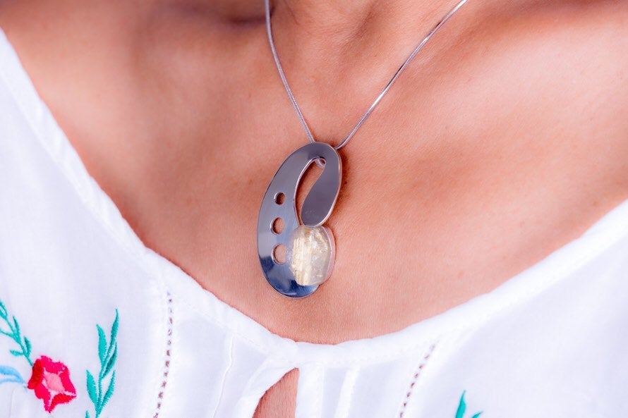 Paint palette Pendant Sterling silver with rutilated quartz Chester Allen one of a kind necklace related to being in alignment with self