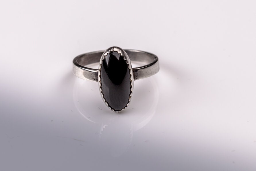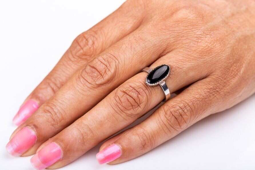 Black Onyx ring, Sterling silver ring, Pinky gemstone ring, gift for her, harmonious relationship present, stone for protection, healing