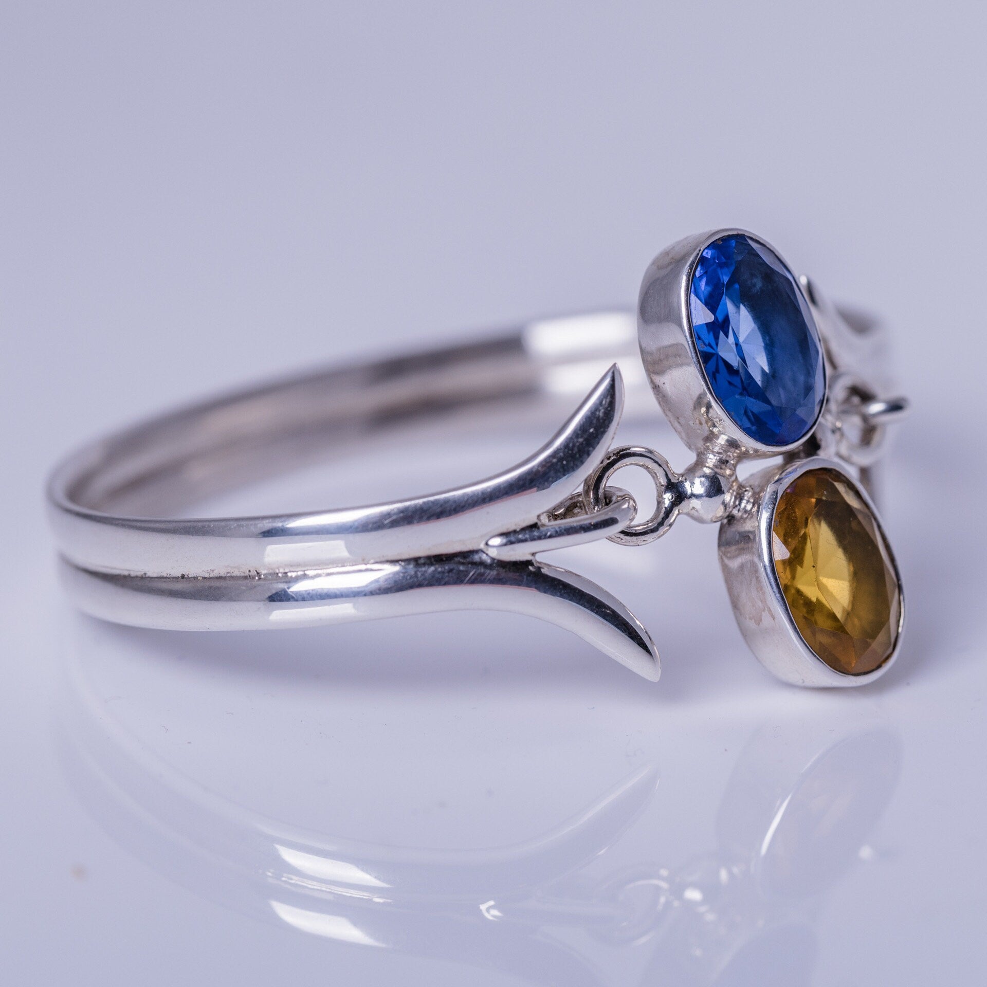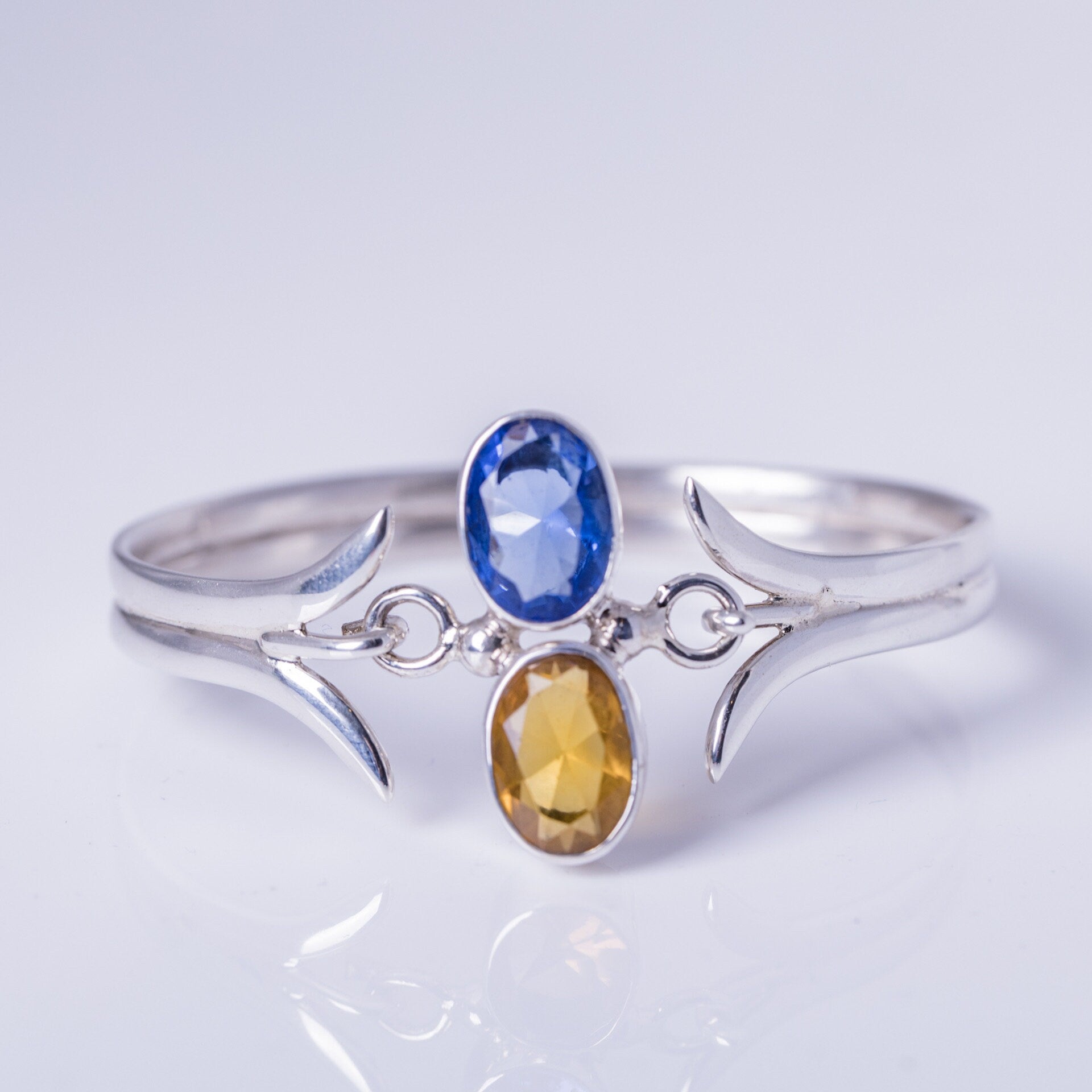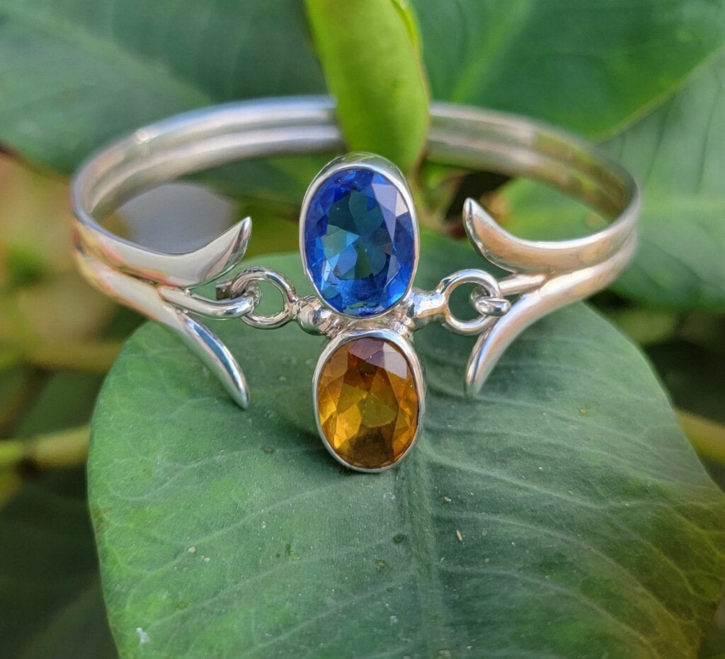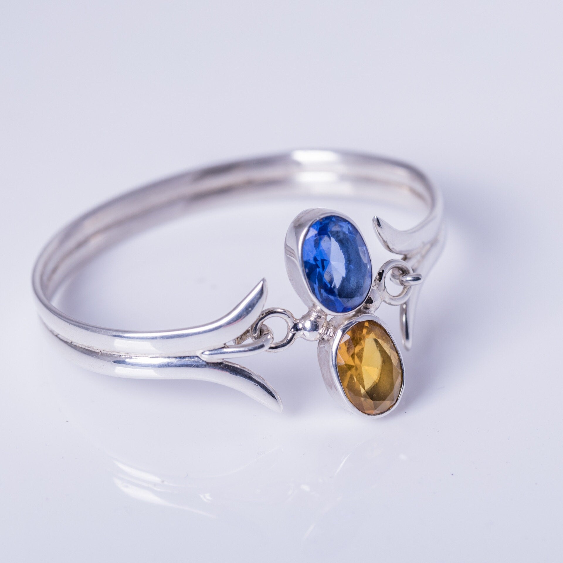 Blue and Golden topaz bracelet set in sterling silver, unique double gemstone necklace, handmade jewelry gift