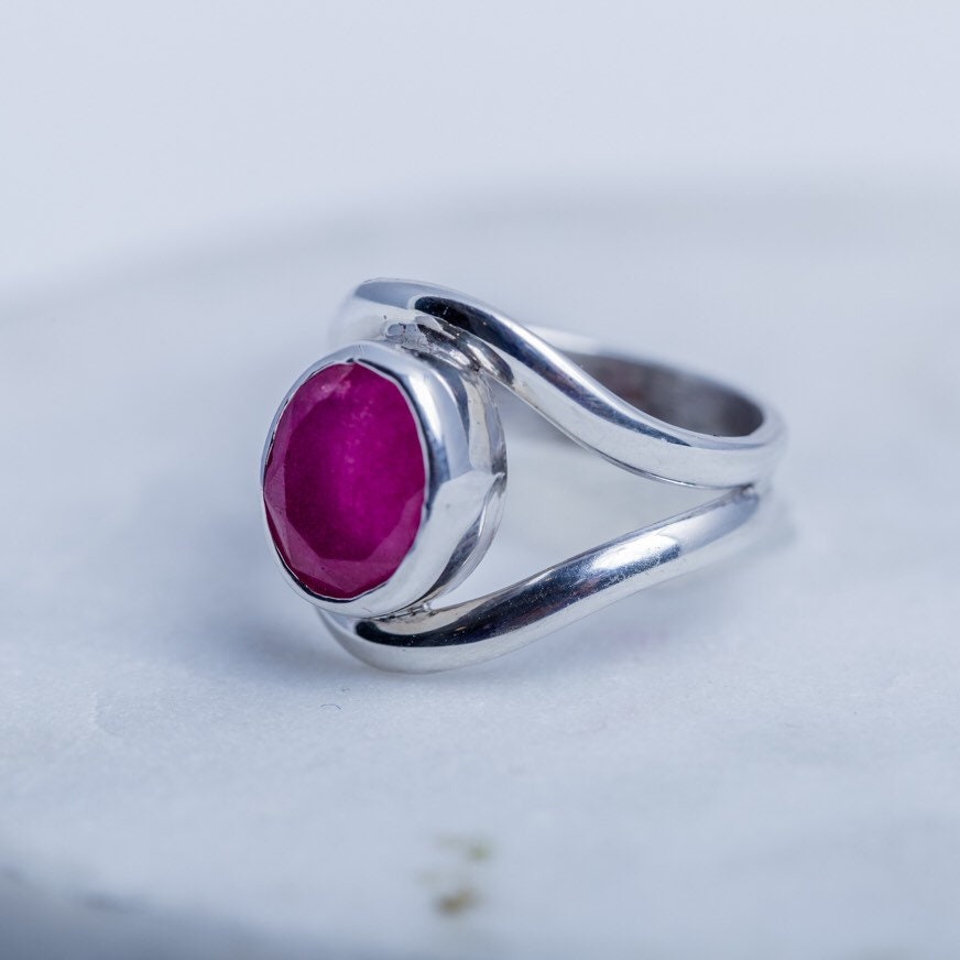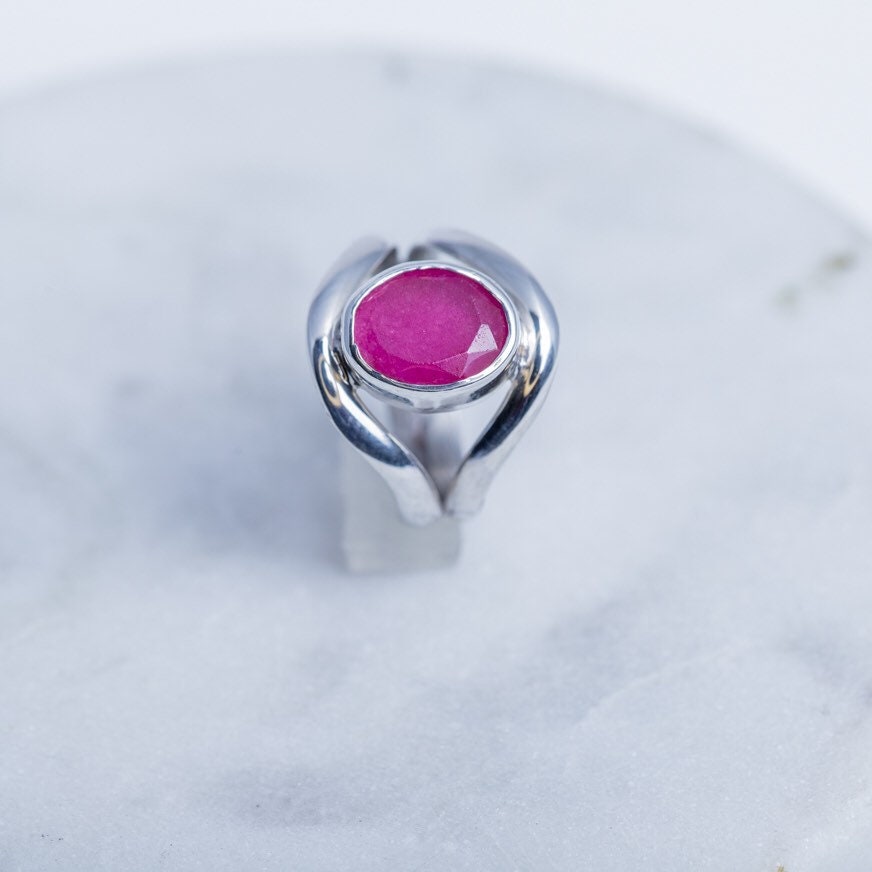 Fuchsia Ruby ring, Sterling handmade statement ring with Brazilian Ruby faceted stone