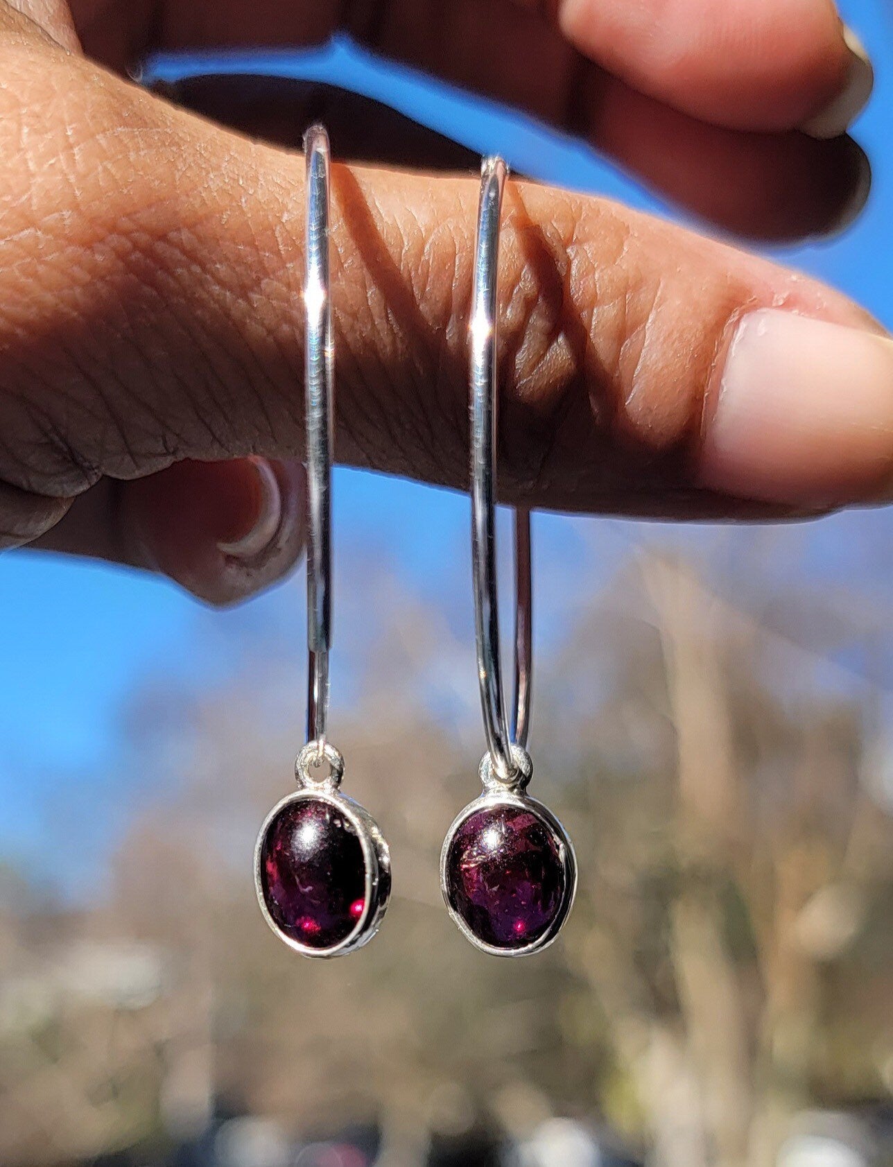 Garnet hoop earrings sterling silver 2 earrings in one! January birthday gift