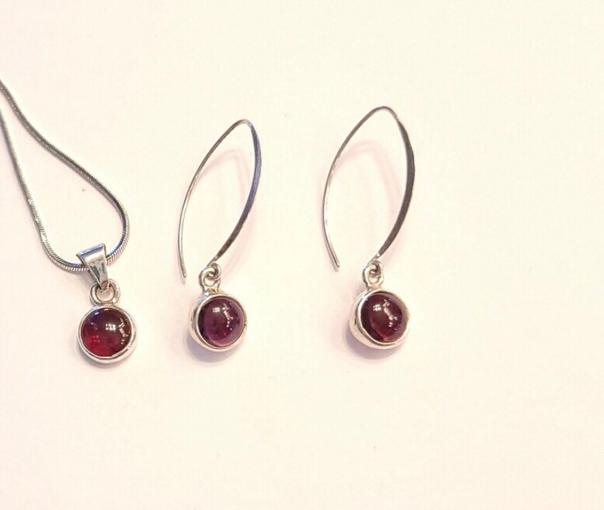 Garnet necklace set, January Birthday gift, Round Garnet drop earring and necklace set, stone for love