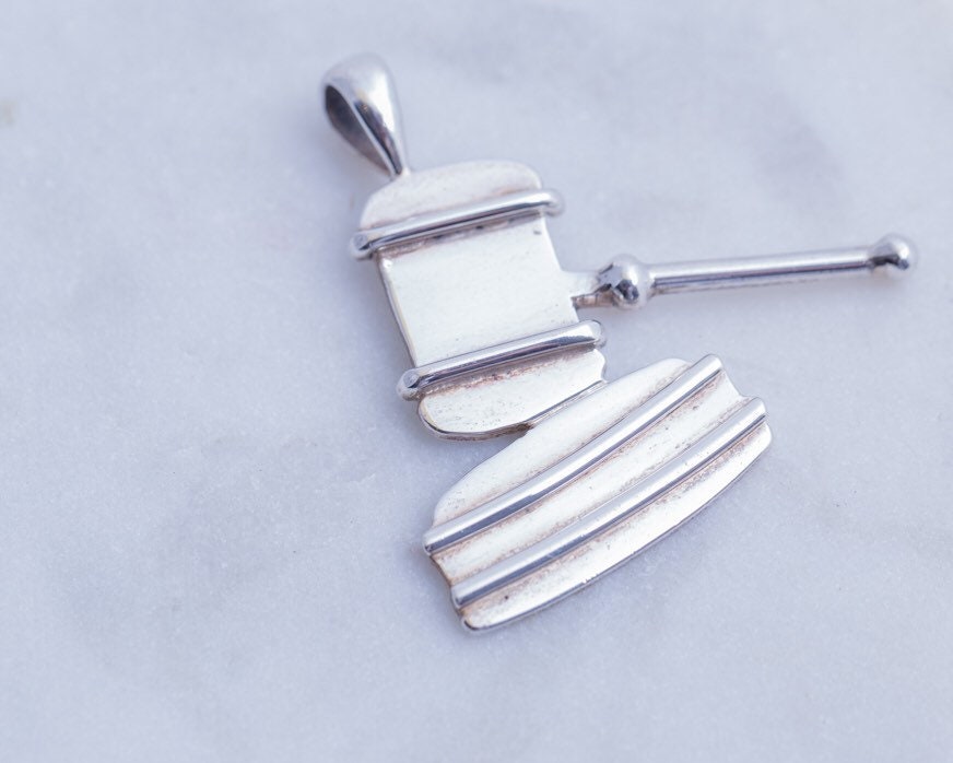Gavel pendant for judge, lawyers gift, law student gift Sterling silver handmade mallet accessories for auction, formal or office wear