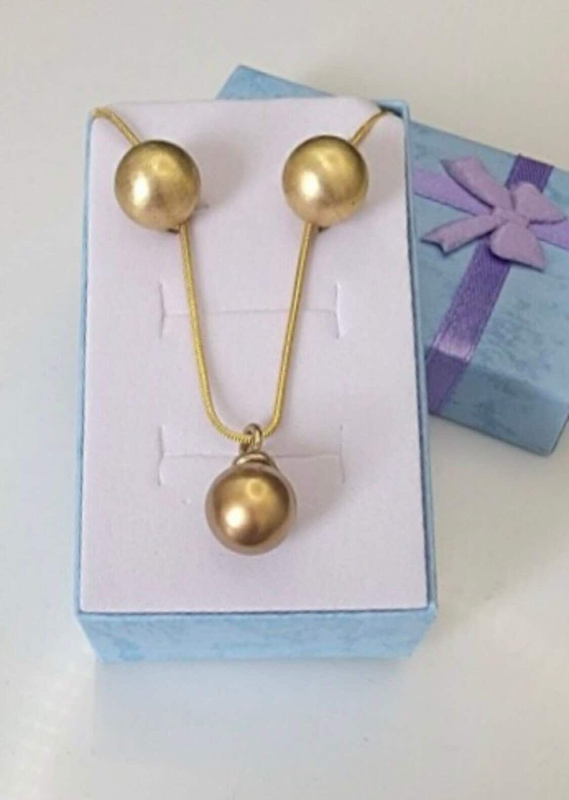 Gold ball post earrings and pendant necklace set. A classic jewelry set for any occasion. Makes a great gift for the holidays!
