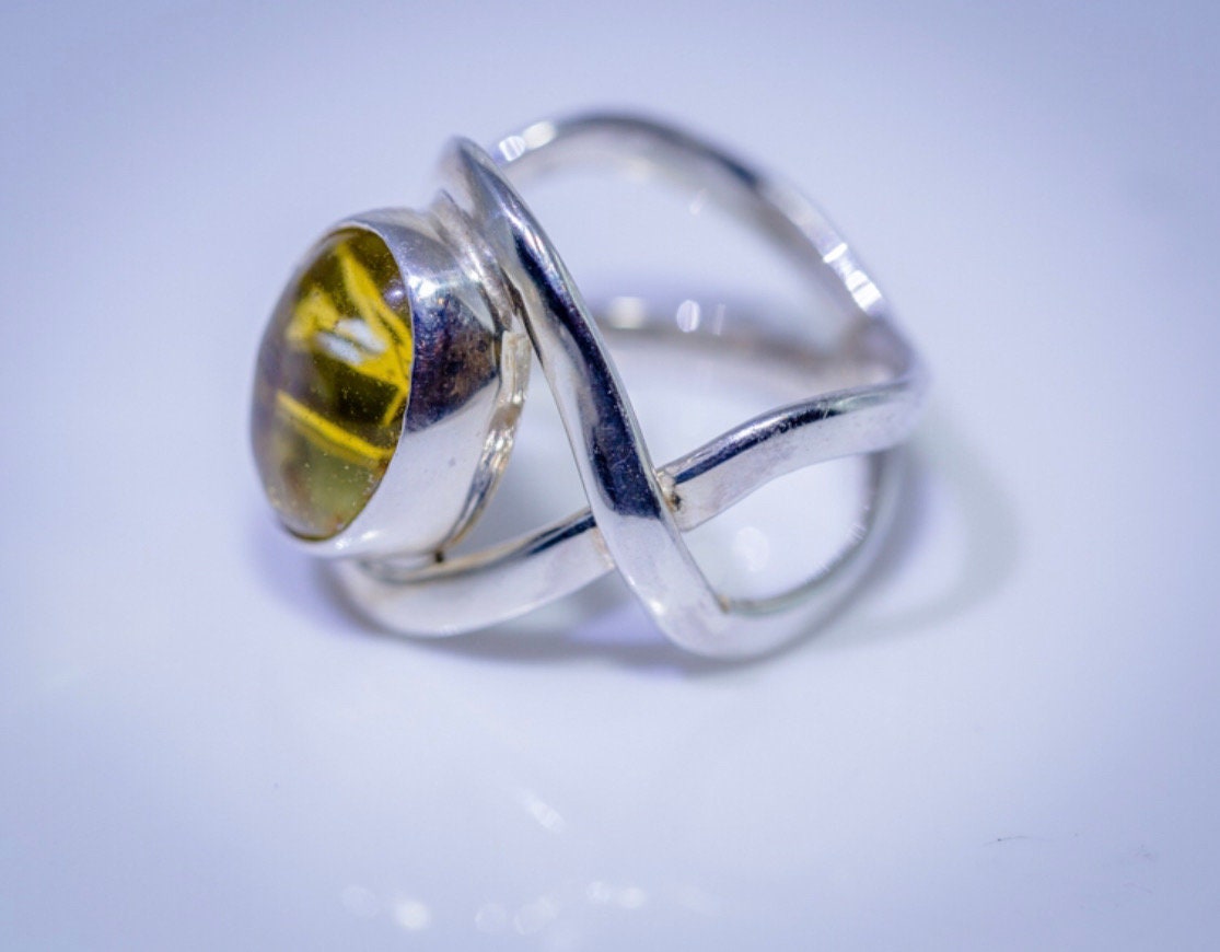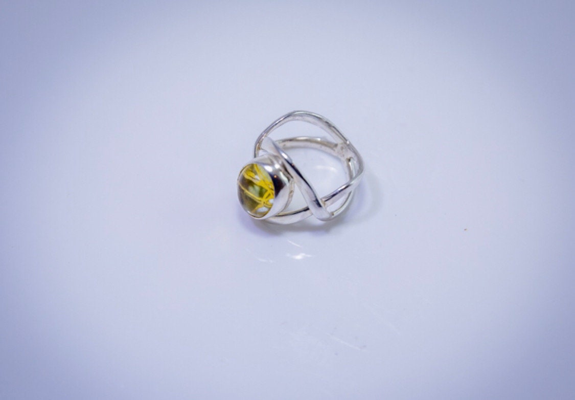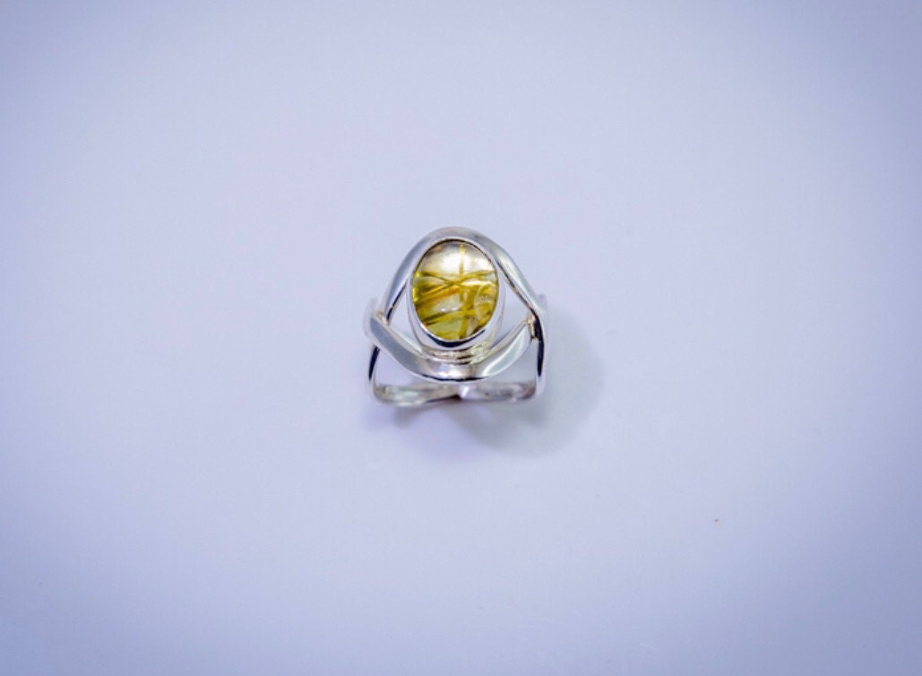 Gold color rutilated quartz ring, sterling silver handmade gemstone ring, statement jewelry, gift for her