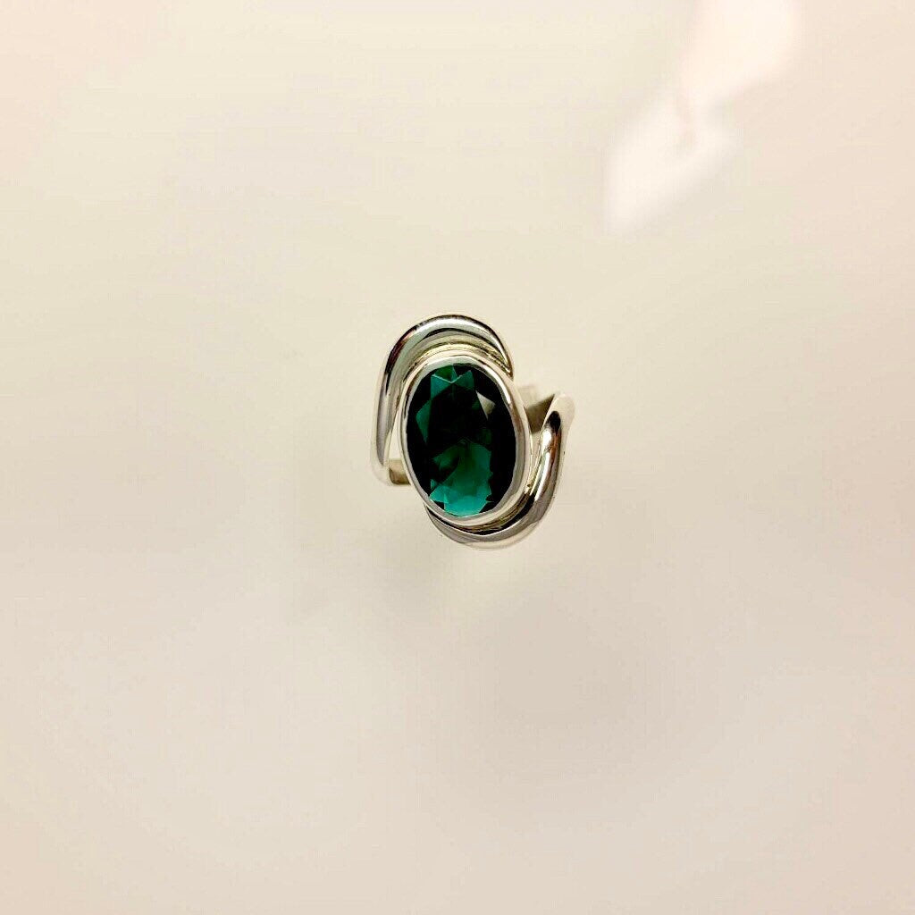 Green topaz ring, 23rd anniversary gift, Sterling silver oval topaz statement ring, Handmade jewelry, Emerald color gemstone