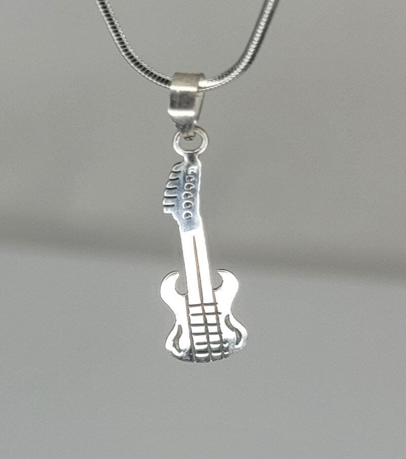 Guitar necklace, music jewelry gift, sterling silver pendant