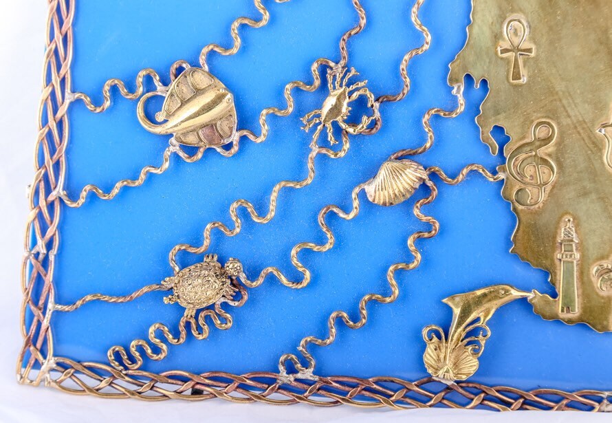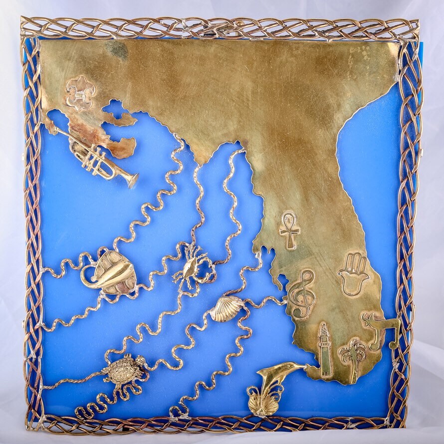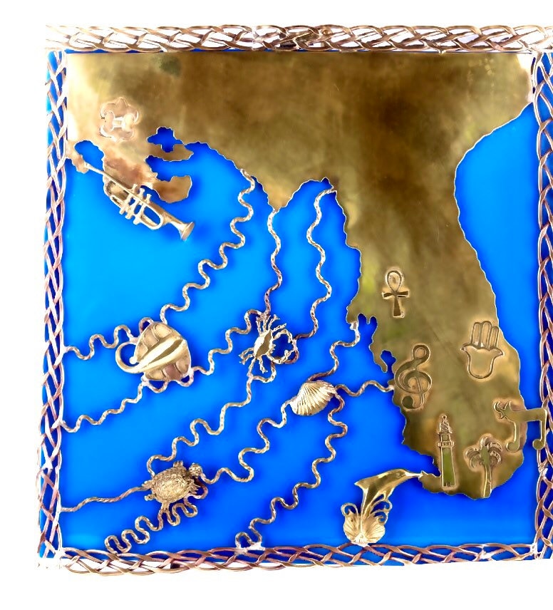 Gulf coast tabletop art, Gulf of Mexico mantle art,marine biology gift, estuary conservation science and art for the wall
