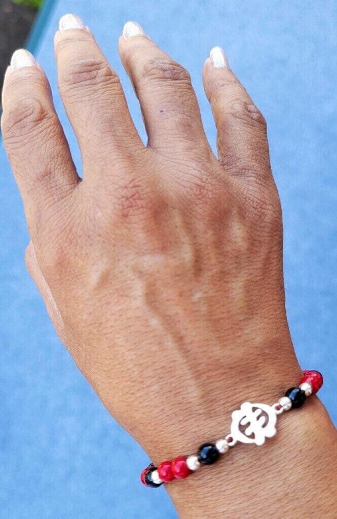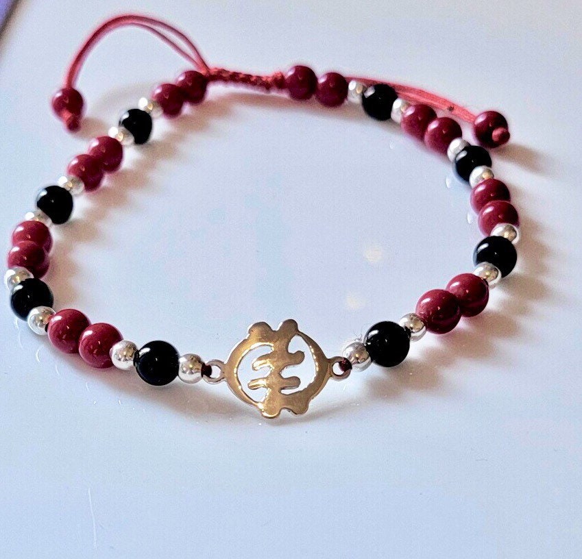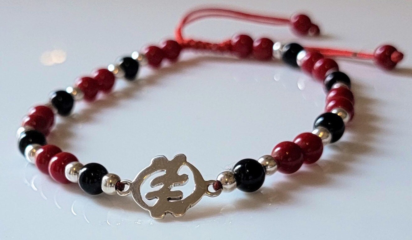 Gye Nyame bracelet, black red, sterling beaded bangle, adjustable bracelet, great last minute gift for him or her