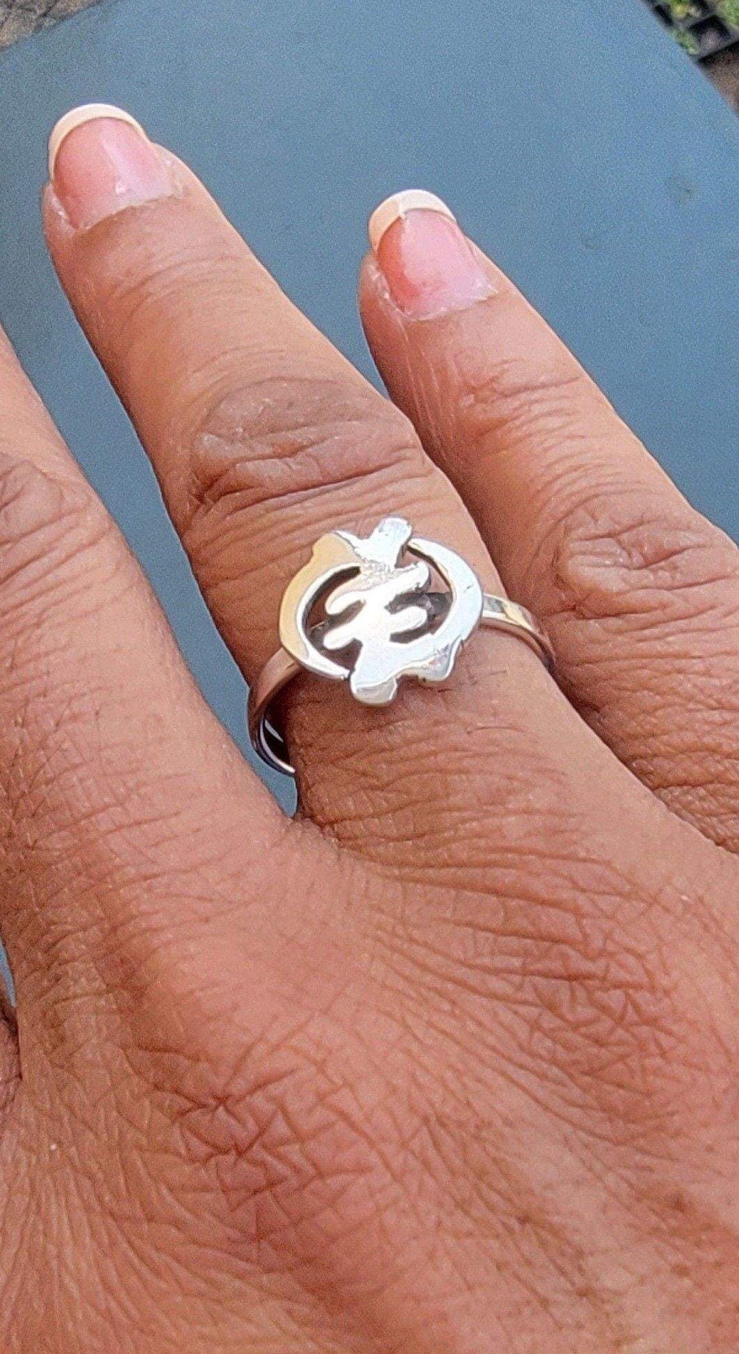 Gye Nyame God First Sterling silver ring medium face