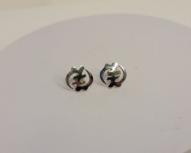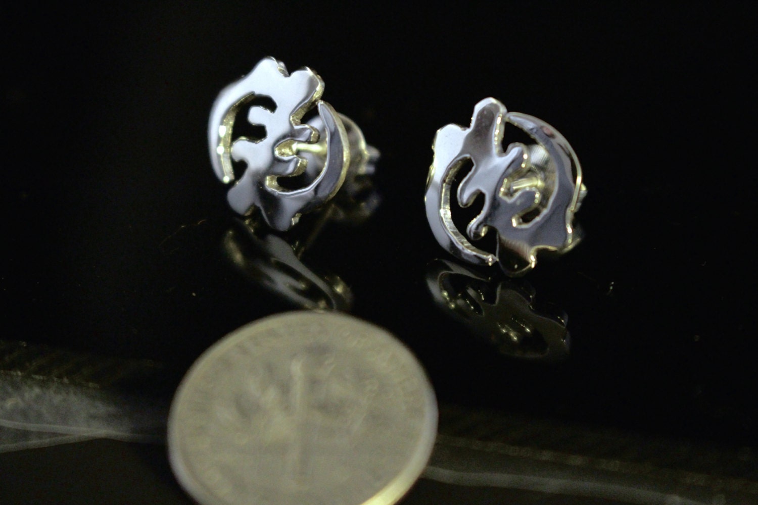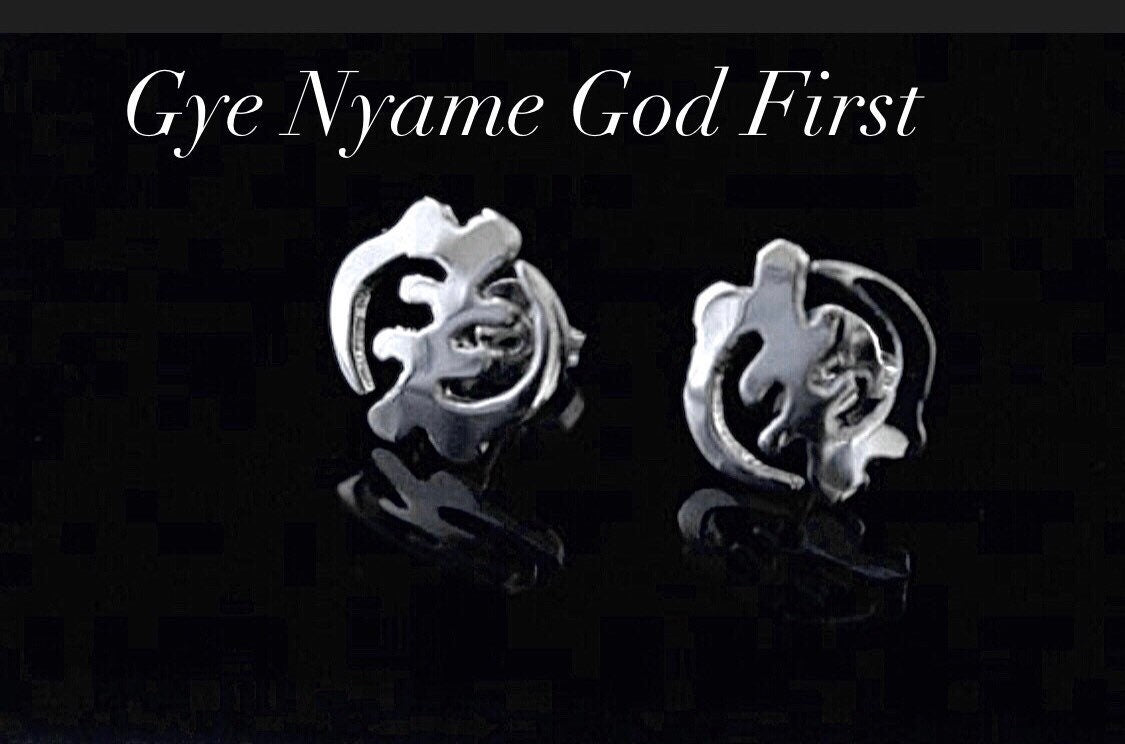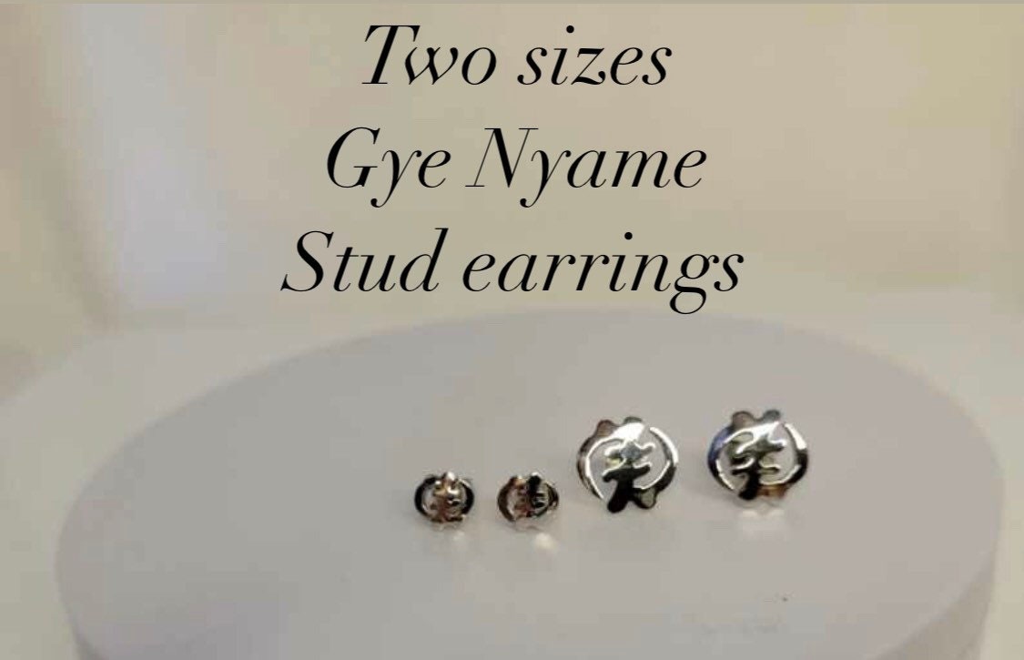 Silver Earrings post Gye Nyame God First adinkra handmade curved high polished Africa Asia Cultural jewelry afrocentric 1/2" by 1/2" size