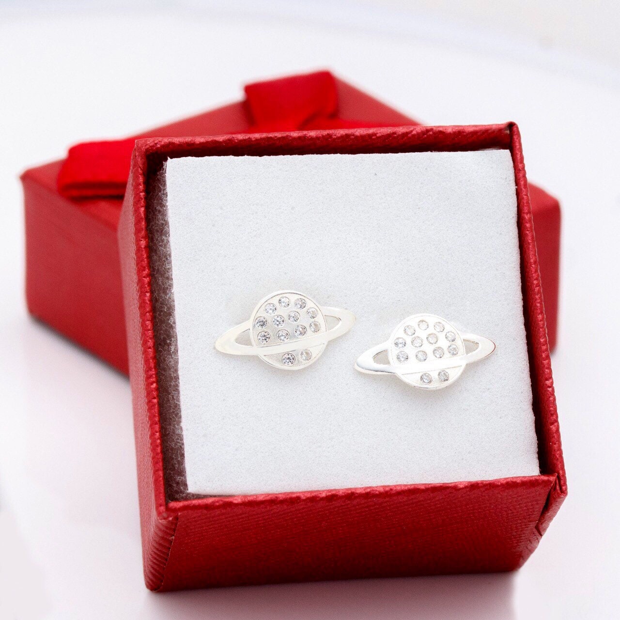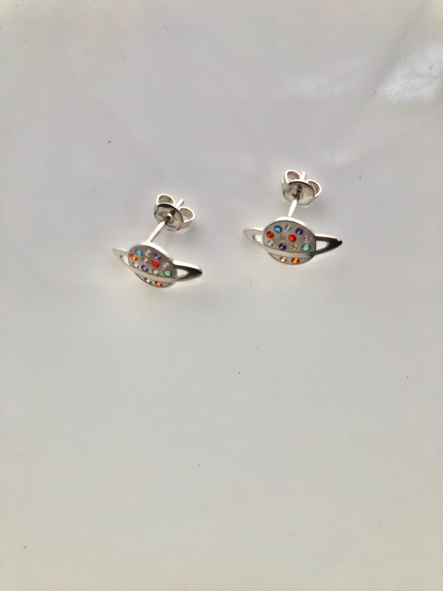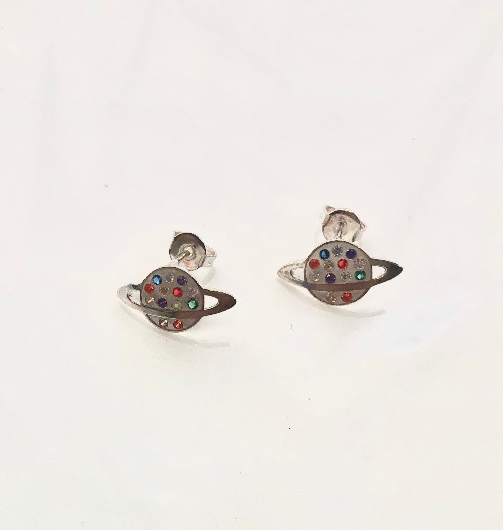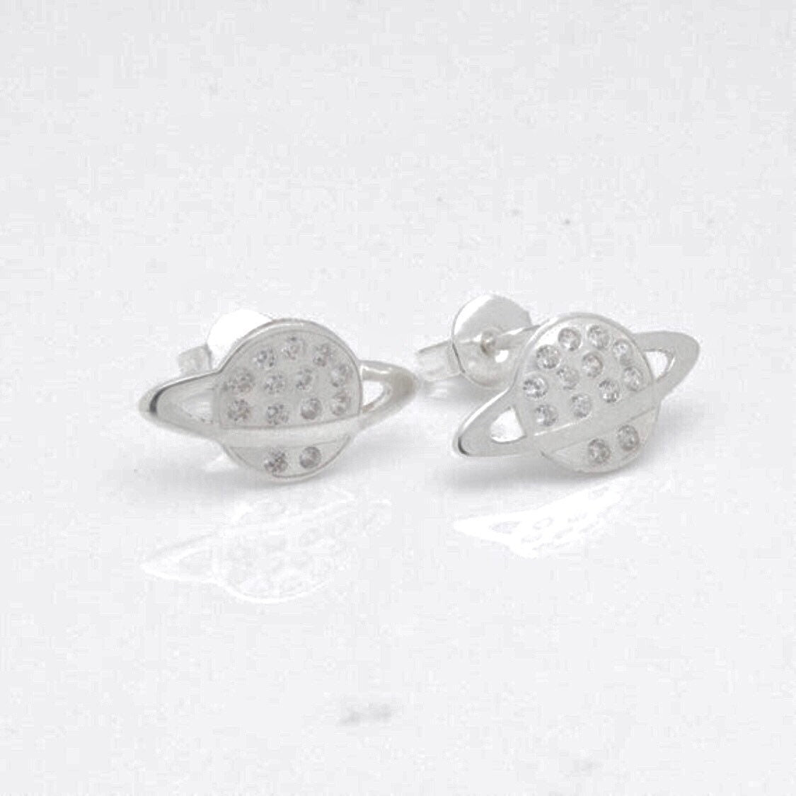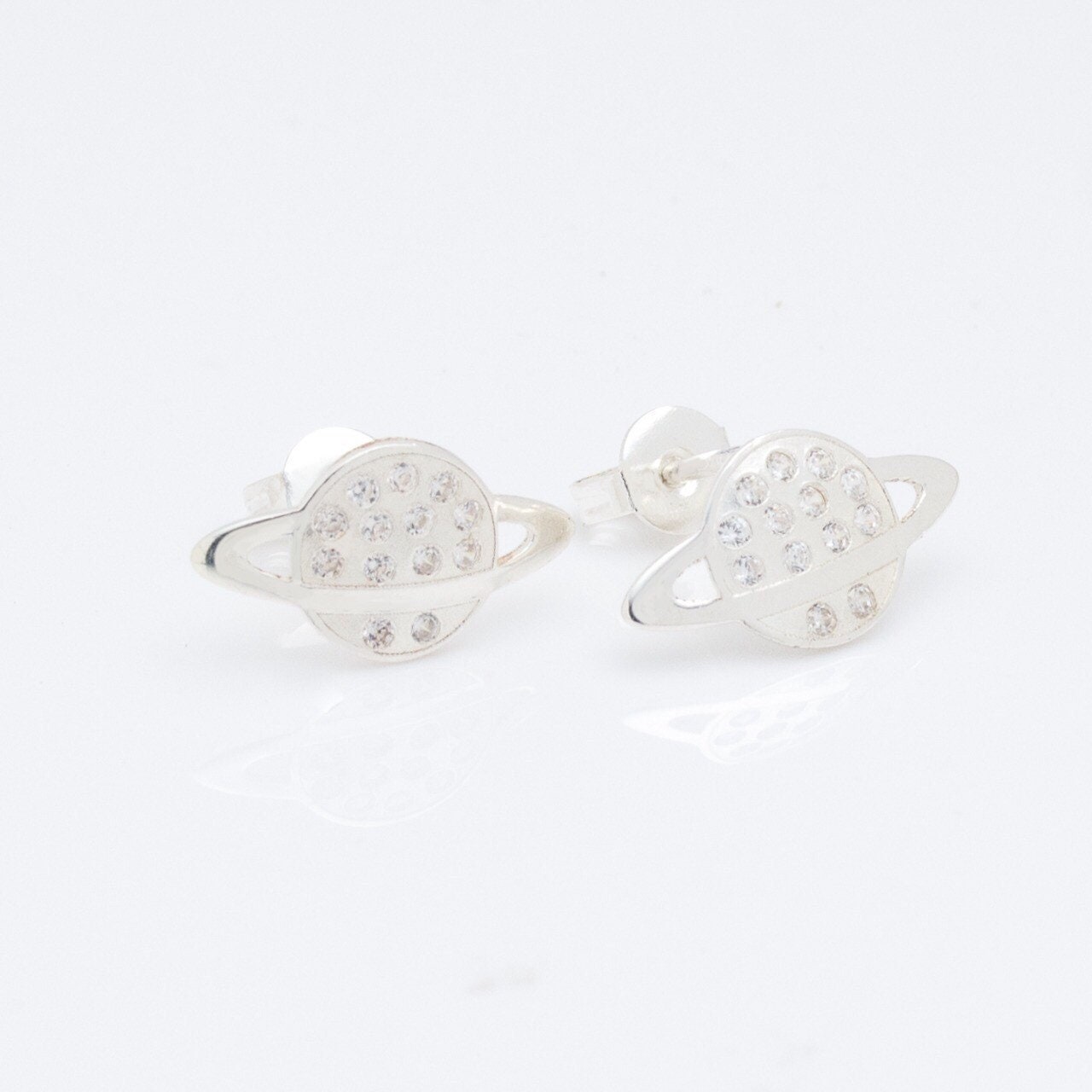 Saturn stud earrings, Planet earrings, sterling silver