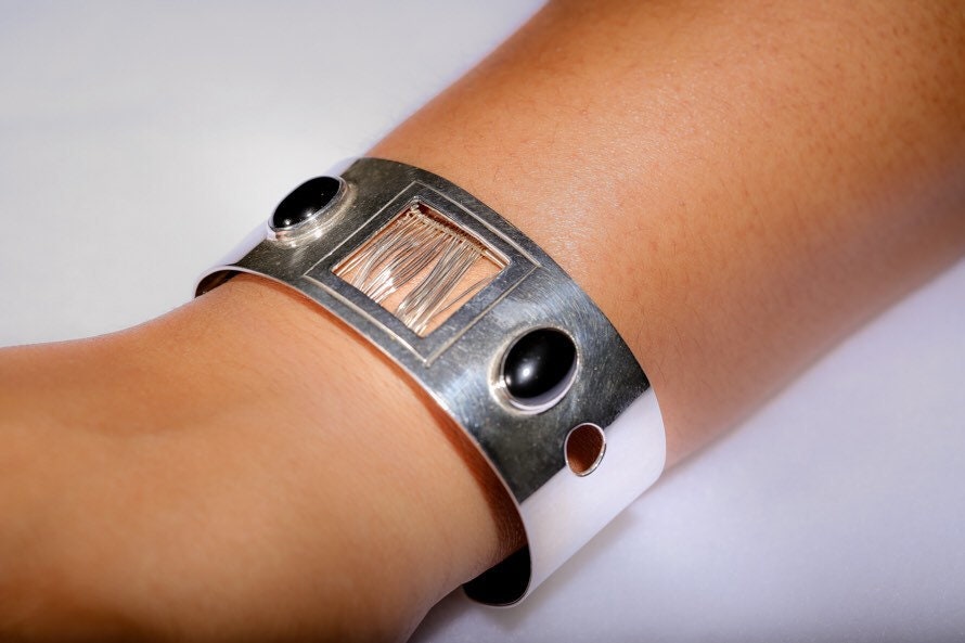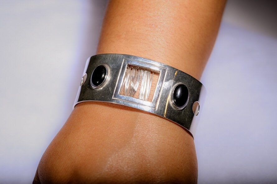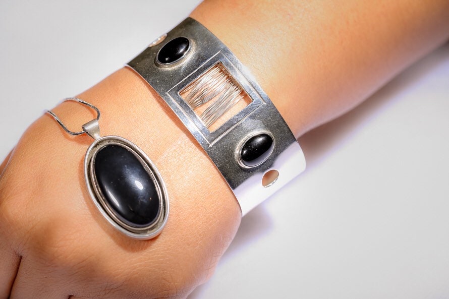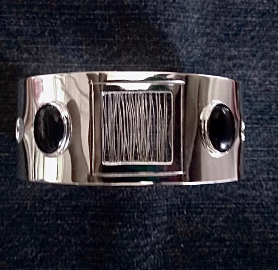 Silver cuff bracelet with onyx stones handmade one of a kind jewelry
