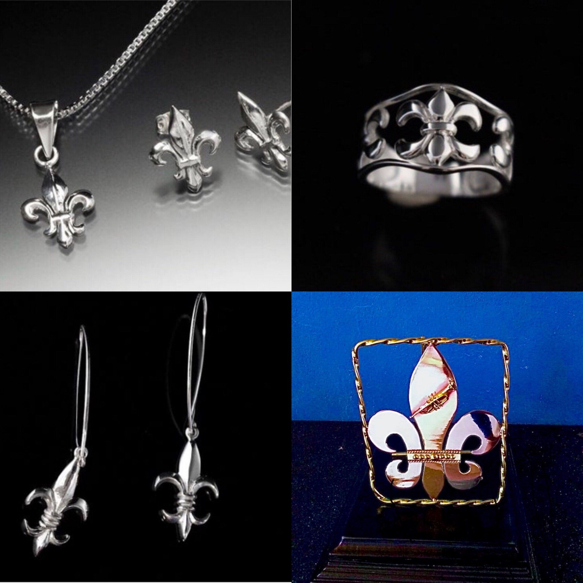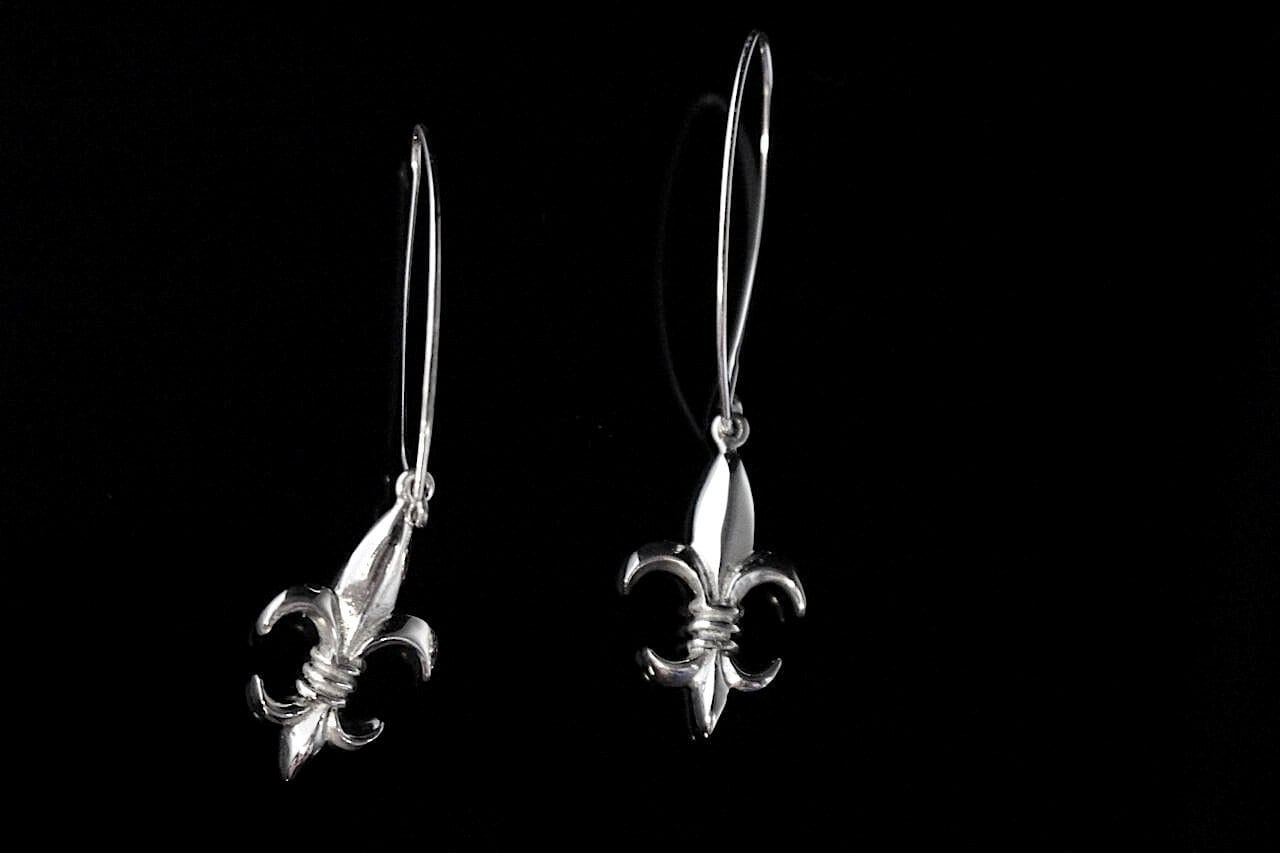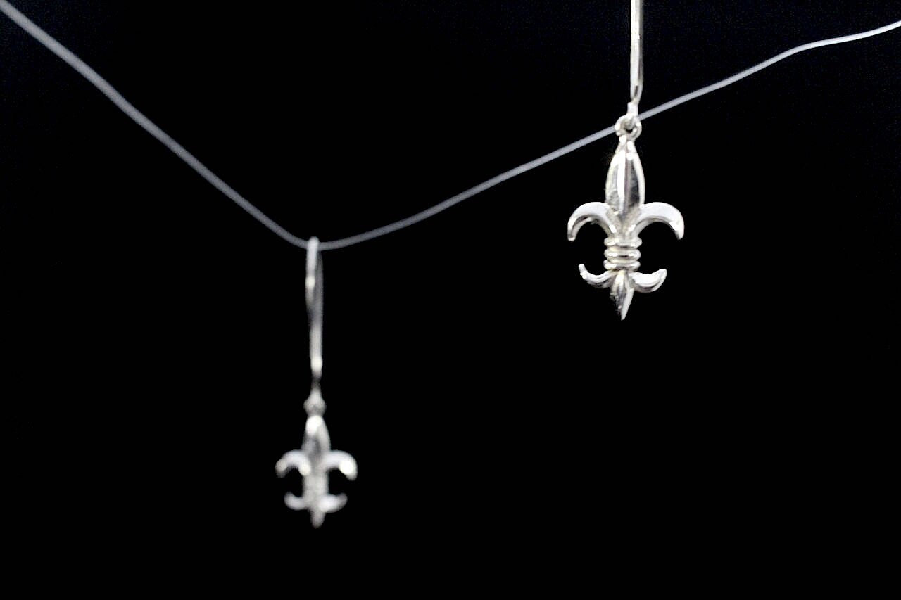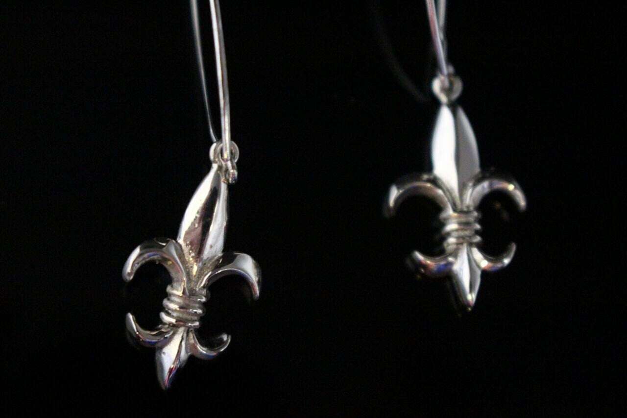 Silver Earrings Dangle Fleur de lis Louisiana Canada Louisville Boys Scouts Sterling jewelry signed sets available Louisiana State symbol
