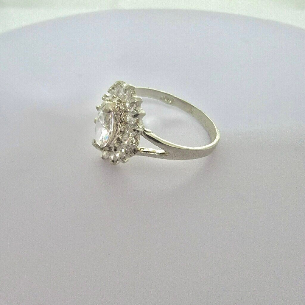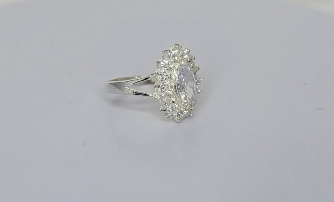 Silver engagement ring, zirconia stones set in sterling silver, handmade jewelry gift for her,