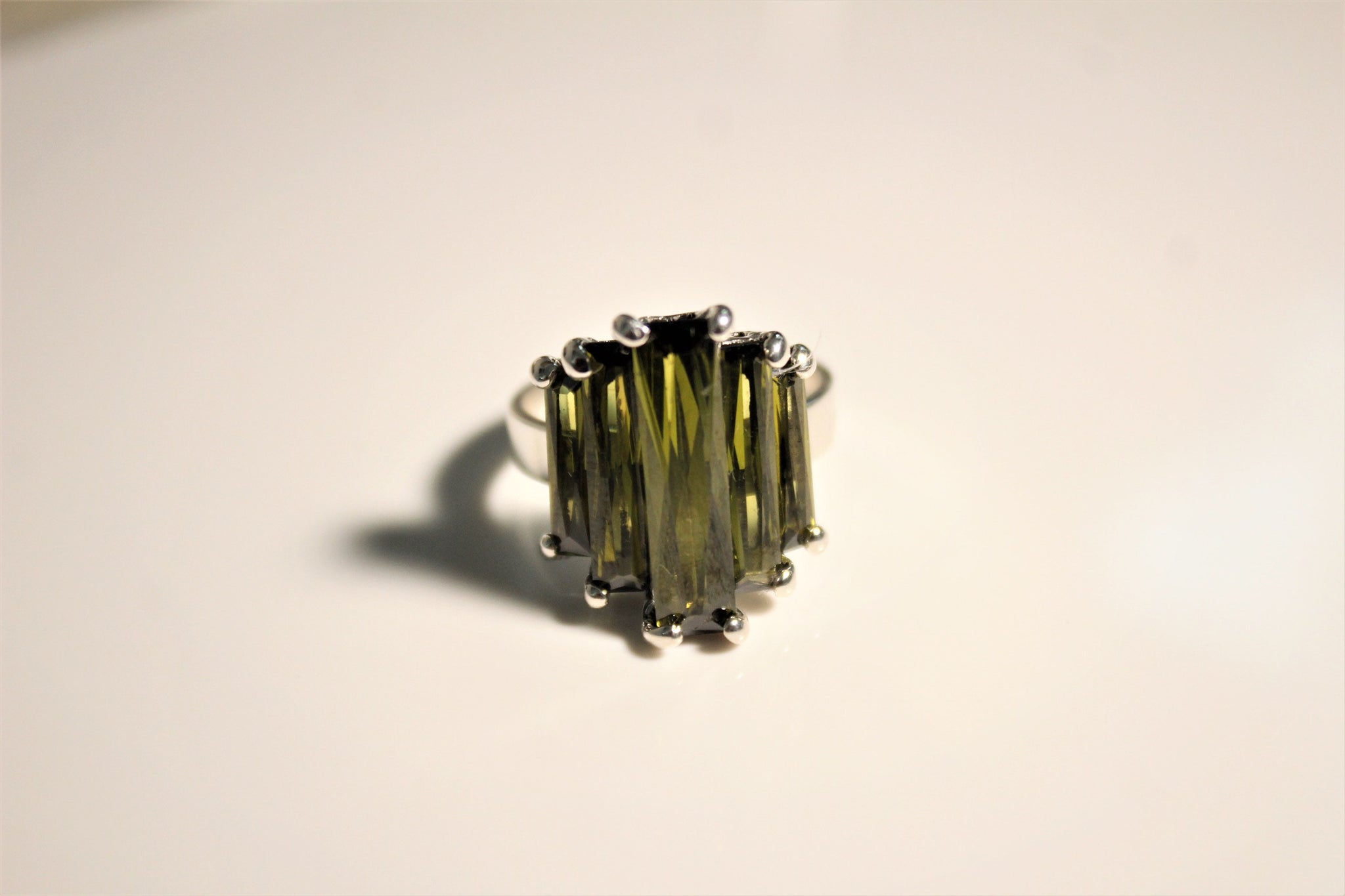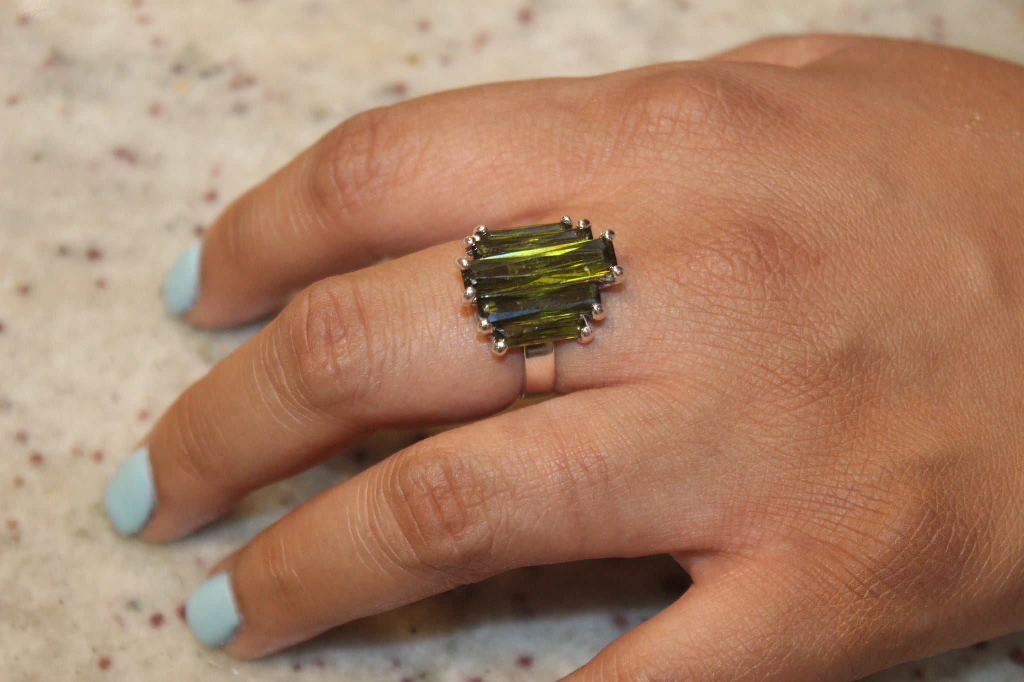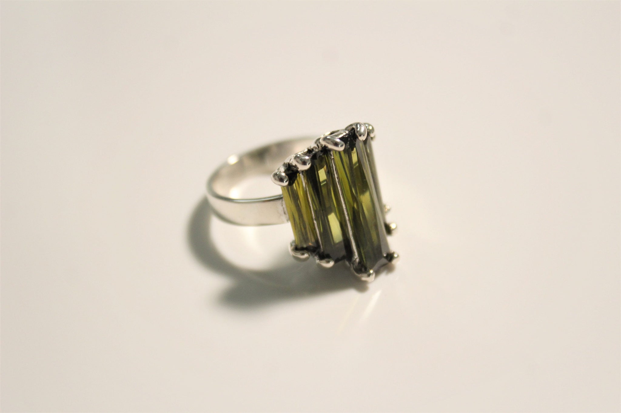 Silver green crystal Ring, August birthstone, Neutral Ground is Higher Ground Sterling statement Ring New Orleans jewelry gift for her