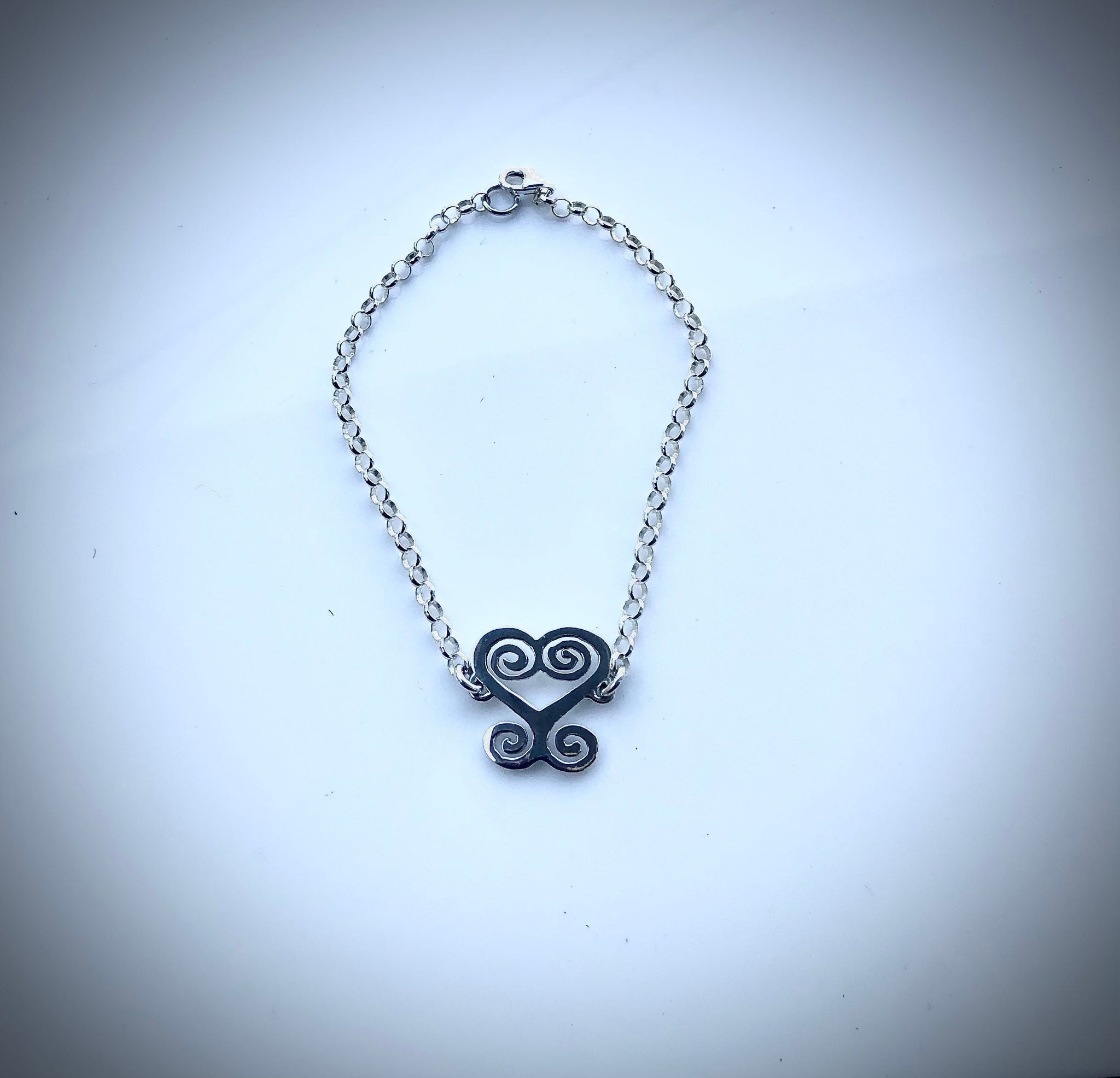 Sterling silver Sankofa Heart link bracelet adjustable lobster closure.