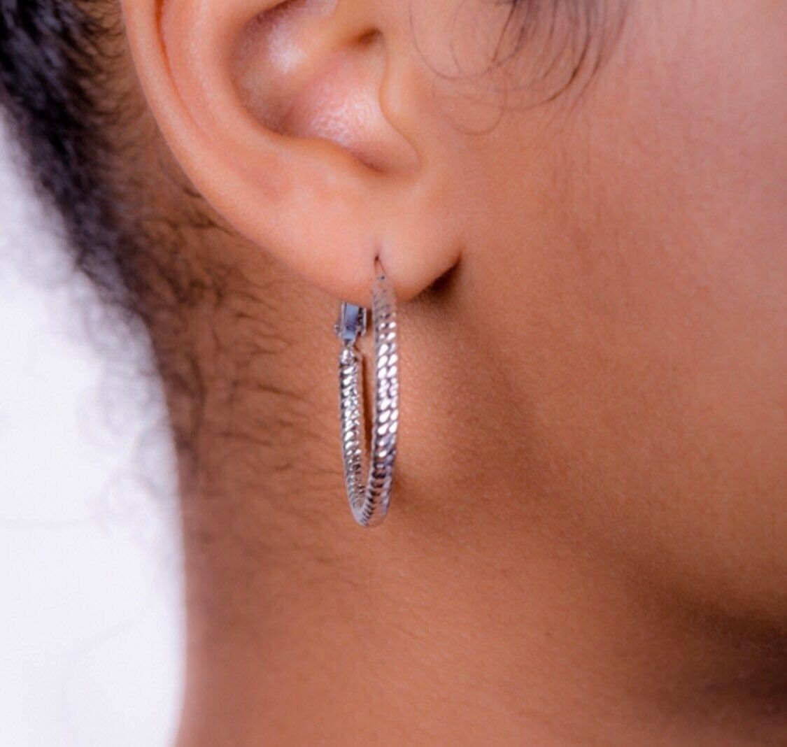 Great pair to match with silver pendant; Perfect for just everyday way. These hoops are very light on the ear and with the lever back closure they support well.