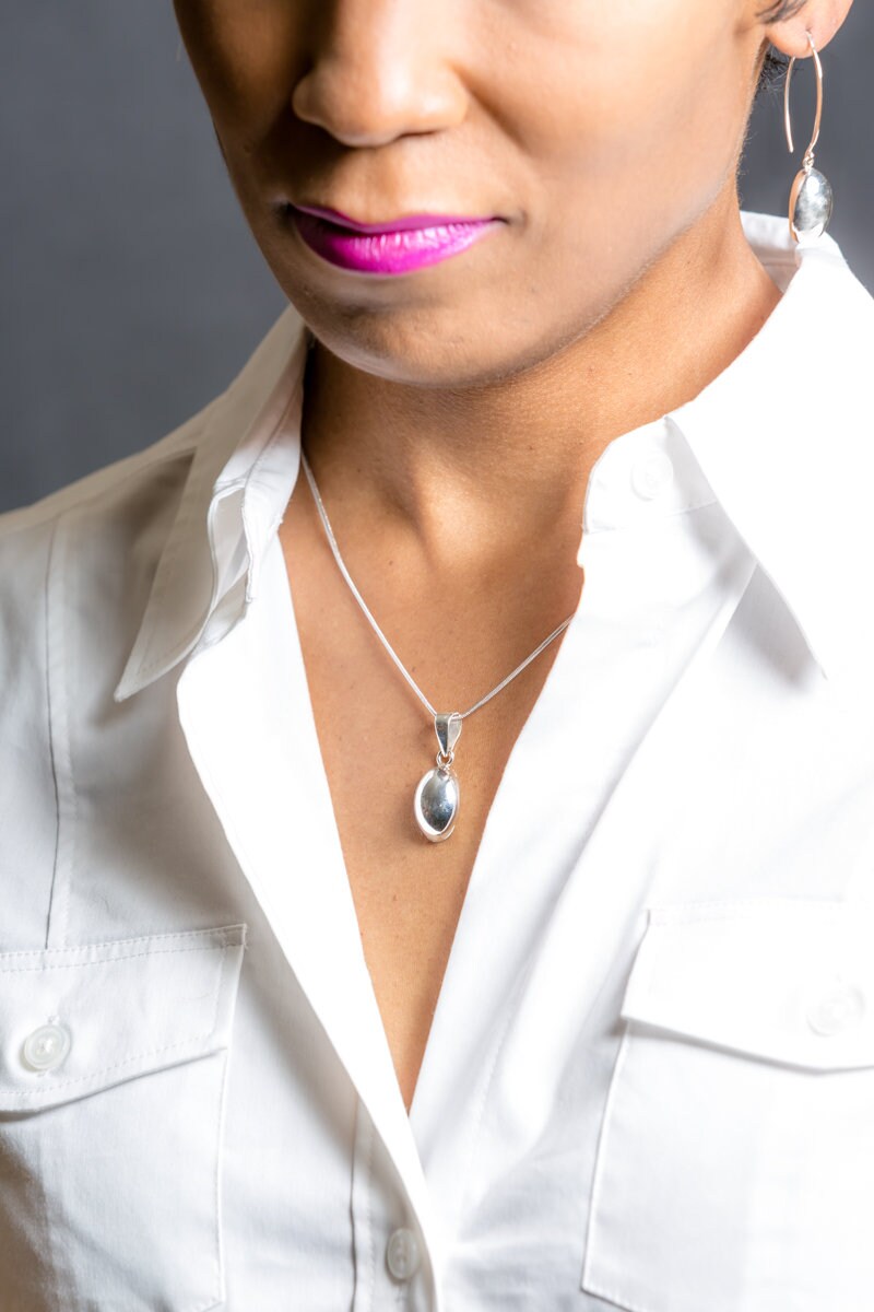 Silver Oval necklace handmade, New Orleans, Chicago inspired bean jewelry gift, Perfect tailored Necklace for working women, gift for growth