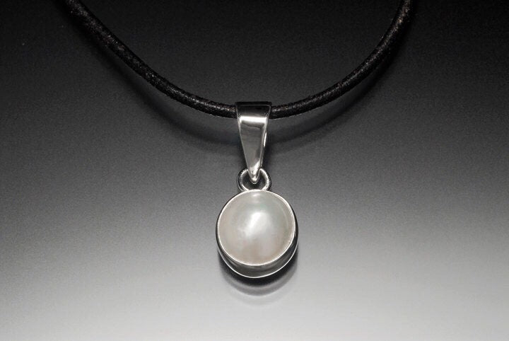 Silver Pearl Pendant, mens pearl necklace, Wedding and Bridal jewelry, June birthstone