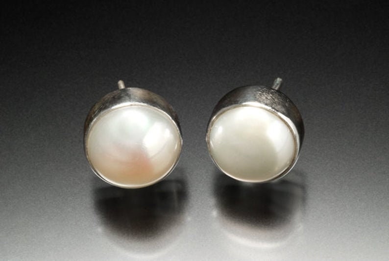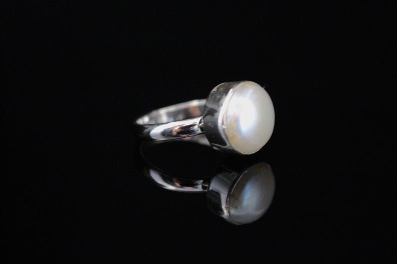 16 gauge sterling silver wire. Bezel set Fresh-water pearl pendants hidden quality. This ring is part of a series with stud earrings, dangle earrings, link bracelet, single drop pendant, and full strand adjustable necklaces