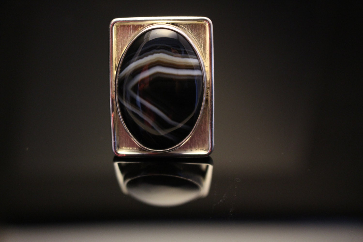 Silver Ring with Black Sardonyx, Square outer shadowbox surrounds the stone.