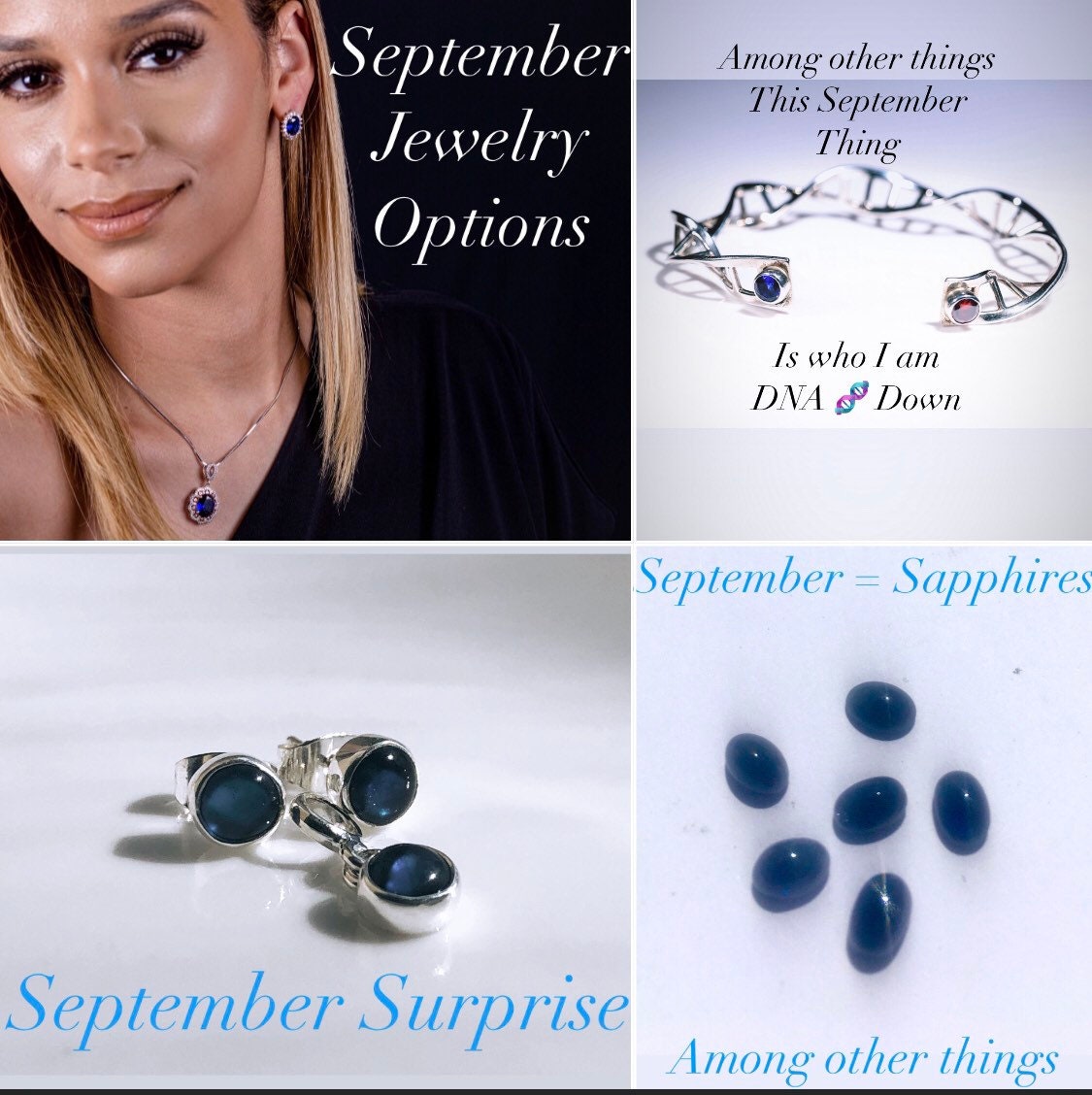September birthday gift, lab created blue sapphire, 45th Anniversary gift, birthstone earrings and necklace set, dark blue oval faceted post earrings and necklace