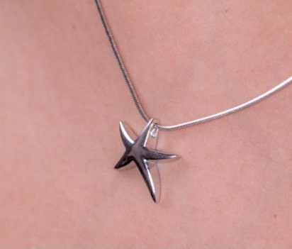 Sterling silver starfish necklace and earrings, ocean inspired jewelry set