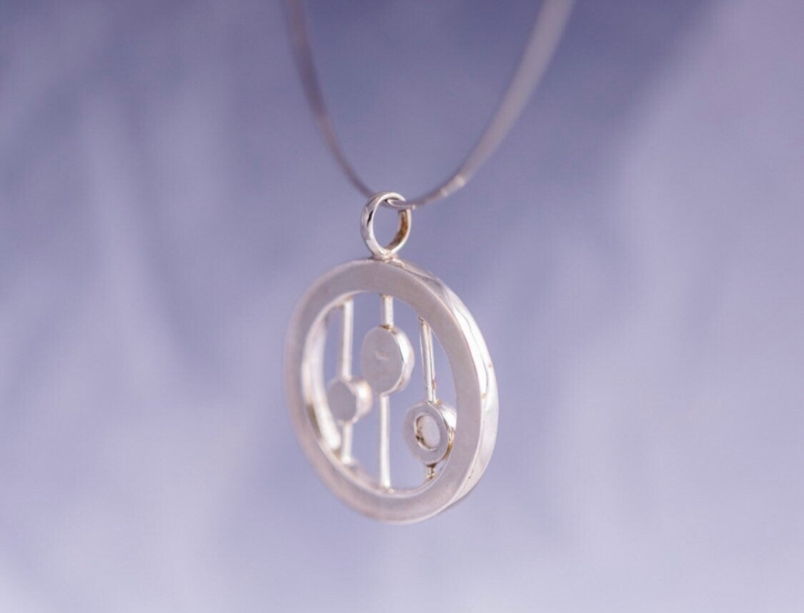 Unique handmade pendant, multi gemstone artistically crafted in hammered sterling silver