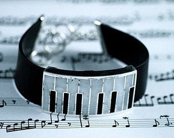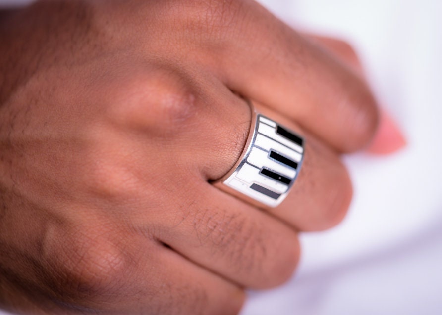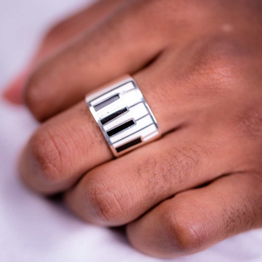 Unique Music gift, Keyboard player, Man wide band ring, black, white ring, music teacher jewelry, Chester Allen, repurposed piano keys