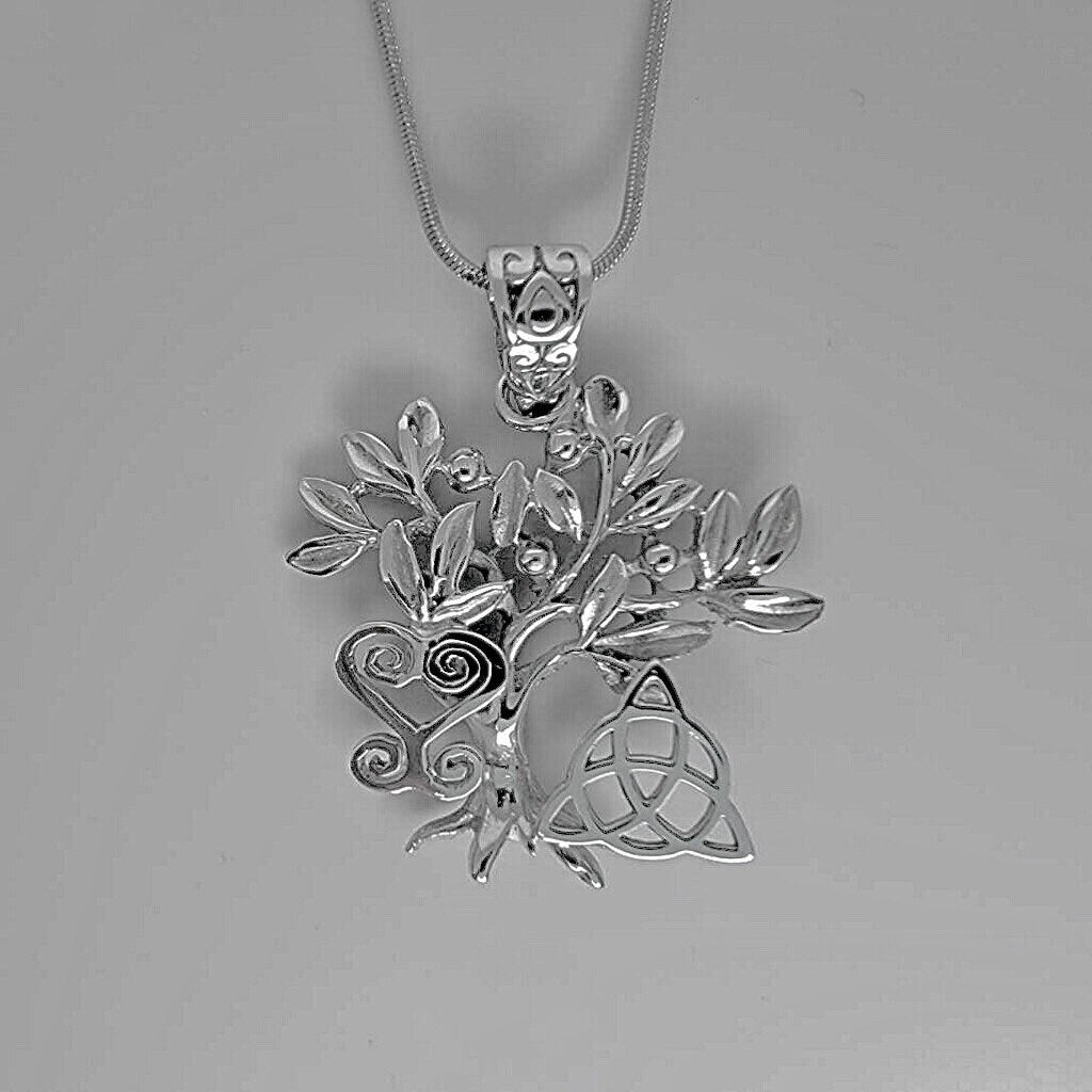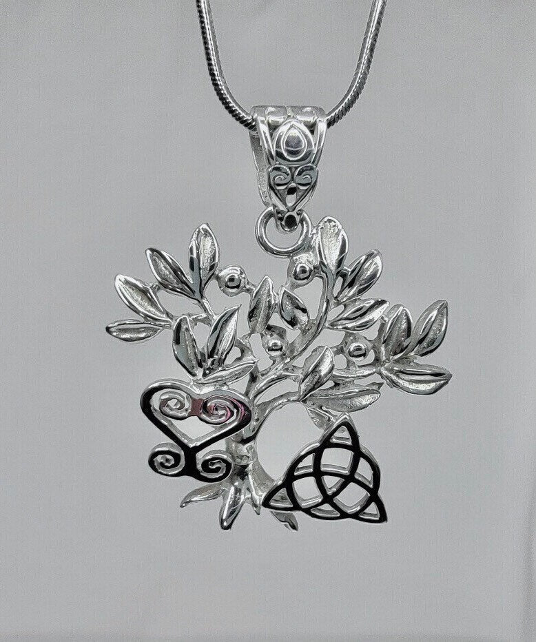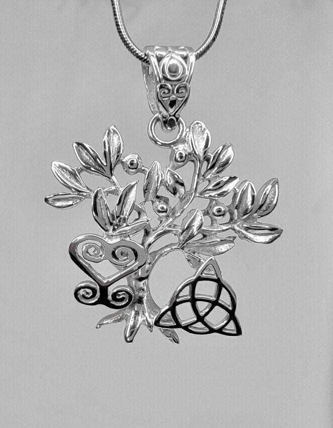 Unique Necklace gift, tree of life necklace, African and Celtic symbols in unique silver pendant,heart sankofa, Triquetra