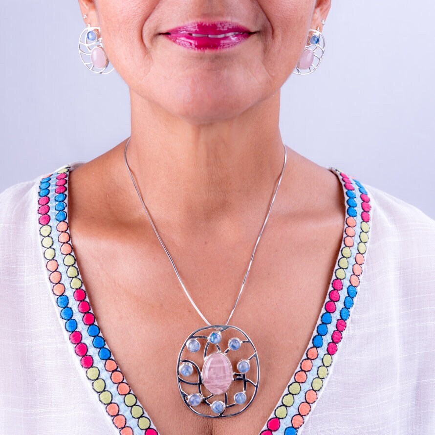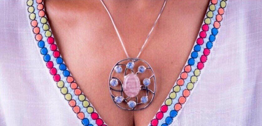 Gemstone, Necklace, Moonstone and Rose Quartz stone jewelry, pendant for healing and new beginnings Many of these items are featured in Moi Magazine.