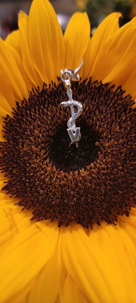 The official symbol of the American Veterinary Medical Association (AVMA) is the Staff of Aesculapius (single snake) with the letter "V"