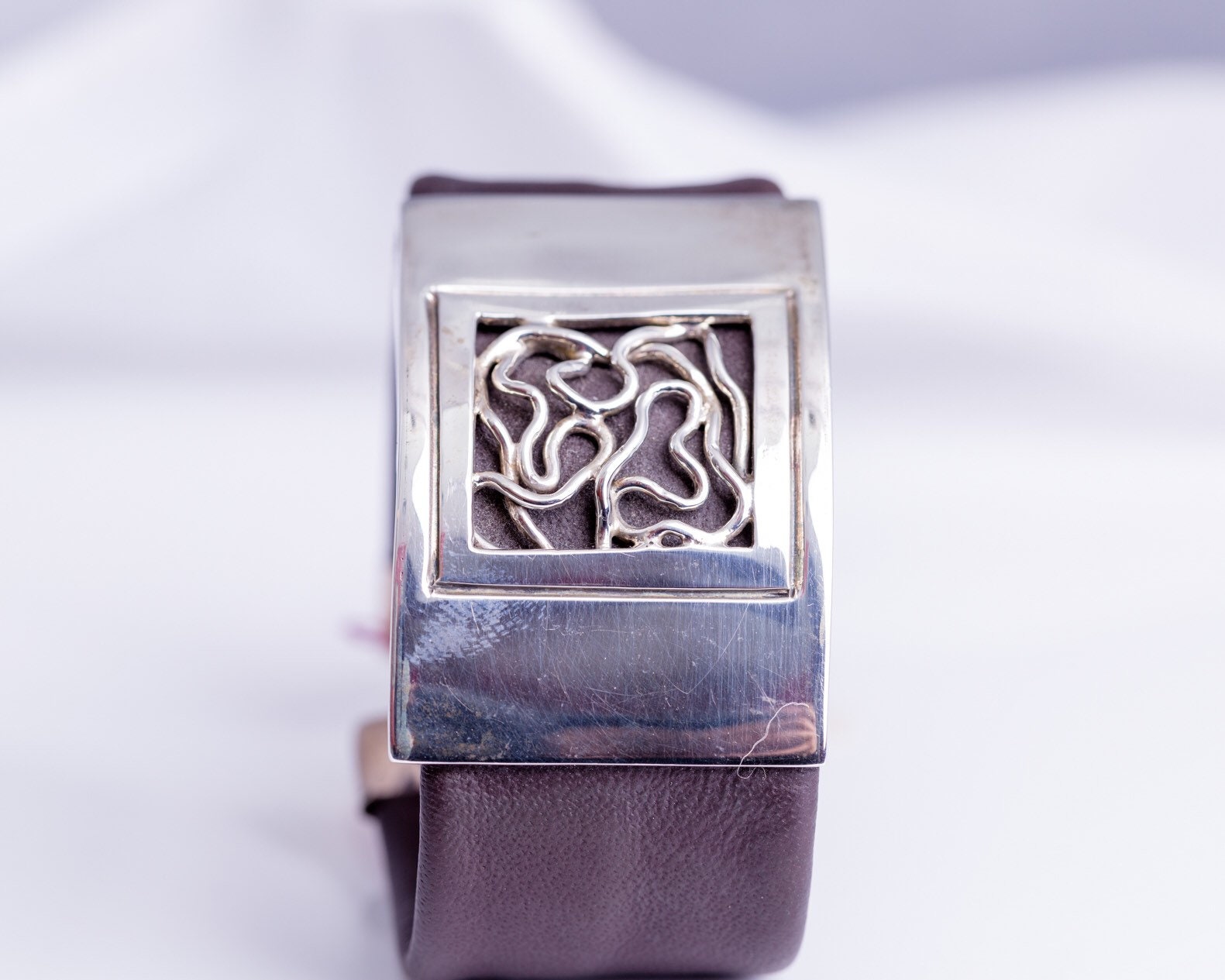 Wide Leather Silver bracelet, unique leather cuff bracelet, New Orleans artist Chester Allen, gift for him