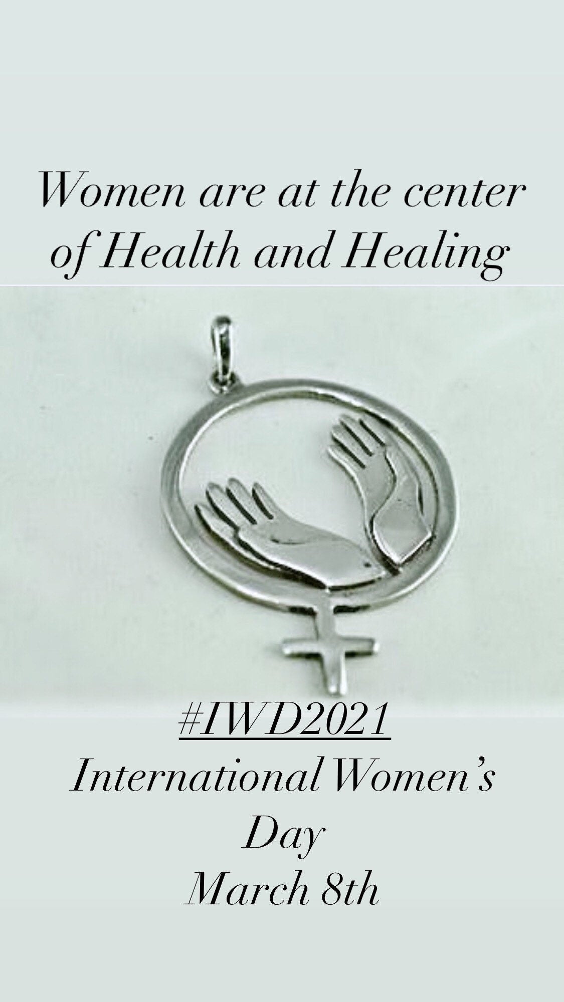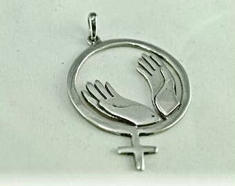 Sterling silver female symbol and healing hands pendant.
